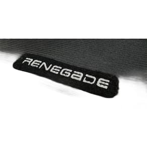Tapete Renegade com traseiro inteiriço e Porta-malas Anos 2015 até 2022 PVC Frisado Ilhós de segurança para melhor fixação Sem odor Base antiderrapante Impermeável Lavável e de fácil limpeza Bordado em todas as peças Encaixe perfeito no seu veículo Modelo personalizado para cobrir o apoio do pé esquerdo