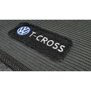 Tapete T-Cross com traseiro inteiriço e Porta-Malas Serve Para Todos os Anos PVC Frisado Sem odor Base antiderrapante Impermeável Lavável e de fácil limpeza Bordado em todas as peças Encaixe perfeito no seu veículo Modelo personalizado para cobrir o apoio do pé esquerdo