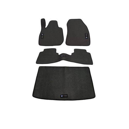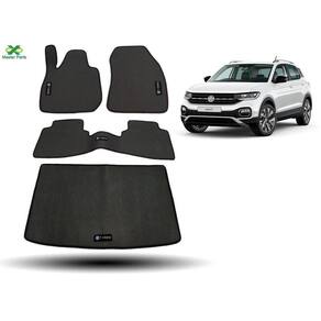 Tapete T-Cross com traseiro inteiriço e Porta-Malas Serve Para Todos os Anos PVC Frisado Sem odor Base antiderrapante Impermeável Lavável e de fácil limpeza Bordado em todas as peças Encaixe perfeito no seu veículo Modelo personalizado para cobrir o apoio do pé esquerdo