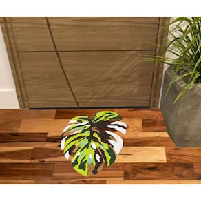 Capacho Vinil com fibras entrelaçadas e costado emborrachado com arte pinta em tinta vinílica especial.