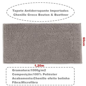 Tapete para banheiro antiderrapante no tamanho 60cm x1,20m modelo Greco, com toda a qualidade e exclusividade da marca Buettner. Importado com toda qualidade vaidade pela própria Buettner, o tapete possui superfície em microfibra (100% Poliéster), dando uma ótima sensação ao pisar! Seu acabamento possui uma grande cobertura de microfibra, com o chenille todo conforme em uma única altura e espessura, dando muito conforto e maciez ao estar sobre ele e deixando o ambiente muito bem decorado.
