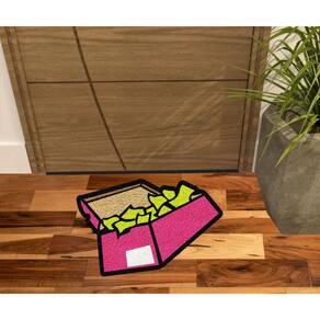 Tapete Capacho Vinil com fibras entrelaçadas e costado emborrachado com arte pinta em tinta vinílica especial.