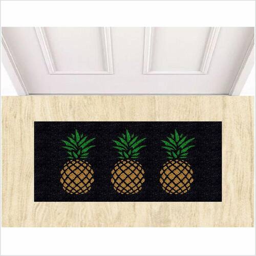 Capacho Vinil com fibras entrelaçadas e costado emborrachado com arte pinta em tinta vinílica especial.