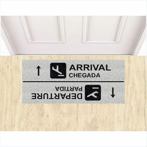 Tapete Capacho Aeroporto Arrival e Departure Divertido Prata