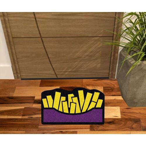 Tapete Capacho Vinil com fibras entrelaçadas e costado emborrachado com arte pinta em tinta vinílica especial.
