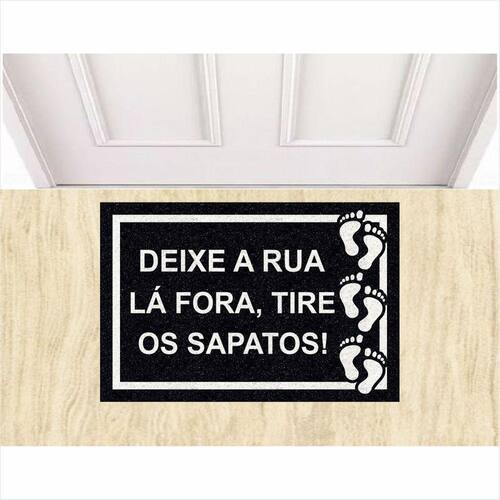 Tapete Capacho Divertido Deixe a Rua La Fora Preto.