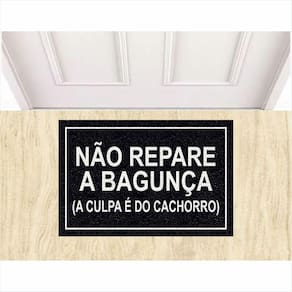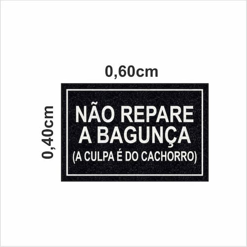 Tapete Capacho Divertido Não Repare Na Bagunça Preto e Prata