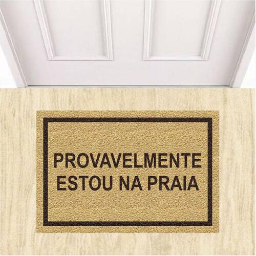 Tapete Capacho Divertido Provavelmente Estou Na Praia 60X40. - Cor: Bege
