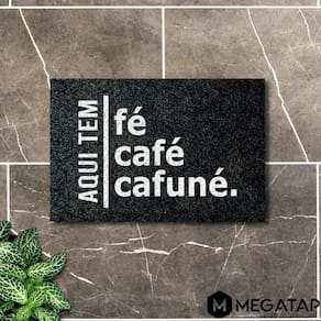 Tapete capacho fe cafe cafune 60x40 decor casa entrada apto tapete aqui tem fé café e cafuné 60x40 cor:preto