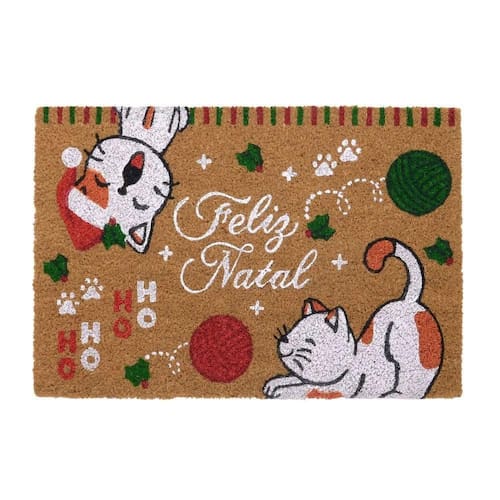 Tapete capacho feliz natal 60x40cm gatos mabruk medidas aproximadas: 60x40x1,5cm composição:fibra de coco contém: 1 unidade atenção: imagem meramente ilustrativa. Pode ocorrer mudanças no tom da cor para o produto real ou mudanças na embalagem sem aviso prévio por parte do fornecedor/fabricante.