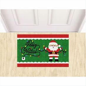 Tapete Capacho Feliz Natal Pisca Pisca e Papai Noel 60X40 cm