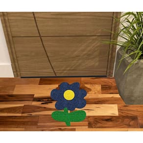 Tapete tipo Capacho Vinil com fibras entrelaçadas e costado emborrachado com arte pinta em tinta vinílica especial.