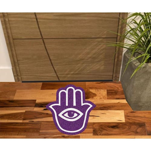 Tapete Capacho Vinil com fibras entrelaçadas e costado emborrachado com arte pinta em tinta vinílica especial.