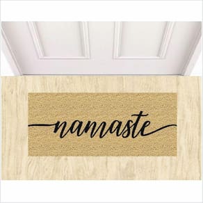 Tapete tipo Capacho Vinil com fibras entrelaçadas e costado emborrachado com arte pinta em tinta vinílica especial.