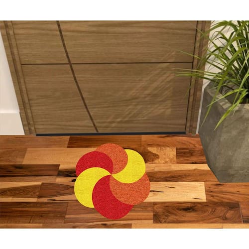 Tapete Capacho Vinil com fibras entrelaçadas e costado emborrachado com arte pinta em tinta vinílica especial.