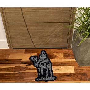 Tapete Capacho Vinil com fibras entrelaçadas e costado emborrachado com arte pinta em tinta vinílica especial.