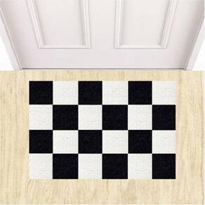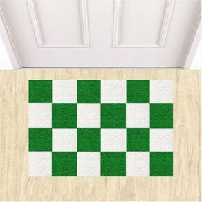 Tapete Capacho Vinil Tabuleiro de Xadrez Decorativo 60X40cm. - Cor: Verde bandeira