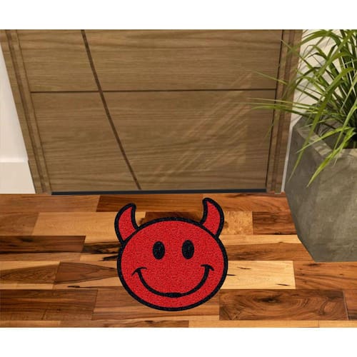 Tapete Capacho Vinil com fibras entrelaçadas e costado emborrachado com arte pinta em tinta vinílica especial.