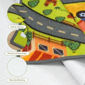 A superfície deste tapete de carro é feita de material 100% poliéster amigo da pele, que é muito macio e confortável ao toque. Você não precisa se preocupar com crianças pegando um resfriado enquanto engatinham em pisos frios, garantindo que seu filho possa brincar confortavelmente. Além disso, o suporte de borracha ecológico oferece aderência antiderrapante, tornando o tapete de construção estável durante o jogo e ajudando a evitar acidentes.