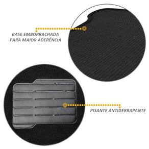 Fabricado em carpete automotivo , material já conhecido pela excelente qualidade e resistência. Além da sua base emborrachada para proporcionar uma melhor fixação no assoalho do veículo.