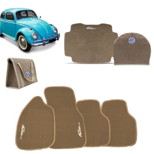 JOGO TAPETE CARPETE AUTOMOTIVO FUSCA 1959 A 1969 COM TAPETE PORTA MALA E CAPA DE ESTEPE + BOLSA ORGANIZADORAIdeal para proteger o assoalho do carro e permitir uma limpeza mais fácil dentro do veículo, os tapetes automotivos são acessórios internos de uso essencial.Para ficar completo, esse jogo de tapete carpete acompanha o tapete para porta malas do Fusca com capa de estepe para proteger o pneu reserva do carro e Bolsa Organizadora para guardar ferramentas, acessórios em geral e ter mais espaço para carregar as bagagens.Compatível com:- FUSCA 1959- FUSCA 1960- FUSCA 1961- FUSCA 1962- FUSCA 1963- FUSCA 1964- FUSCA 1965- FUSCA 1966- FUSCA 1967- FUSCA 1968- FUSCA 1969DIMENSÕES APROXIMADAS DA BOLSA: - Comprimento: 36cm - Largura: 18cm - Altura: 30cmCARACTERÍSTICAS DOS TAPETES: - Cor: Bege - Confeccionado em carpete com acabamento em viés - Bordado com o nome do veículo - Proteção contra poeira - Fácil de colocar e retirar - Acompanha capa de estepe com elásticoCARACTERÍSTICAS DA BOLSA ORGANIZADORA: - Cor: Bege - Material: Carpete com espessura de 4mm - Logo da montadora bordada - Tiras autocolantes na parte interna e traseira da bolsa - Alça de transporteITENS INCLUSOS: - 02 Tapetes dianteiros - 02 Tapetes traseiros - 01 Tapete de porta malas - 01 Capa de estepe - 01 Bolsa organizadoraOBSERVAÇÕES: - Garantia de 3 meses contra defeitos de fabricação - Imagens ilustrativas - Não nos responsabilizamos pelo uso inadequado do produtoNão deixe de conhecer nossos outros produtos!