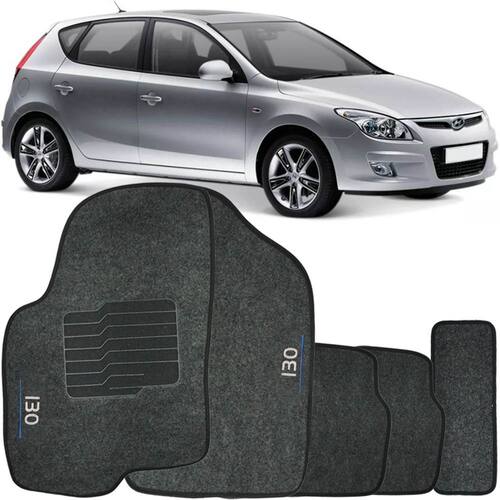 Tapete Carpete I30 2010 à 2012 Grafite Logo Bordado Jogo 5 Peças Personalizado Automotivo