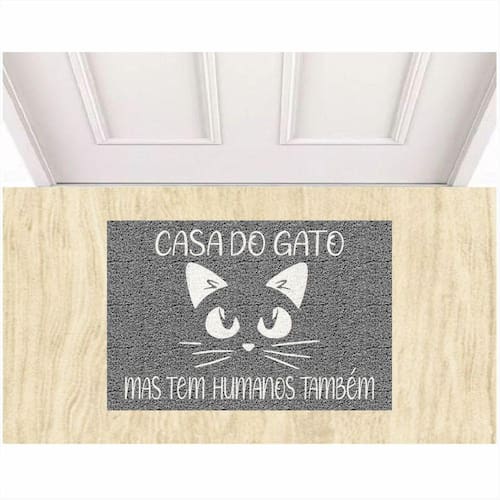 Tapete Casa do Gato Mas Tem Humanos Aqui Também 60X40 cm. - Cor: Cinza