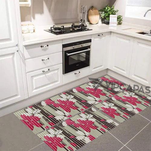 Tapete Cozinha Emborrachado Antiderrapente Kit Com 3 Peças Flor de Liz