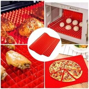Este produto, extremamente inovador e durável, é ideal para uso diário. Seu formato em pirâmides permite que a gordura escorra, evitando que o alimento fique encharcado, tornando-o mais sequinho e saudável. Fabricado em silicone antiaderente, suporta temperaturas altas de até 220ºc e pode até servir como descanso de talheres.