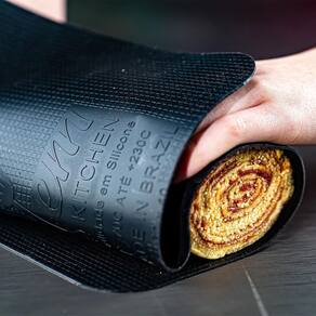 O Tapete de Silicone Culinário 40x60cm foi desenvolvido para quem busca praticidade e rendimento na cozinha. Com superfície antiaderente e reutilizável, ele elimina a necessidade de papel , óleos ou sprays, tornando o preparo mais saudável e econômico. Seu tamanho extra garante espaço de sobra para assar cookies, pães, pizzas, massas e grandes fornadas de biscoitos, sendo perfeito para uso doméstico ou . Fabricado em silicone de alta qualidade, suporta temperaturas de -70°C a 230°C, podendo ser em qualquer tipo de forno, micro-ondas, freezer e até na lava-louças. Formato grande 40x60 cm, ideal para grandes receitas Antiaderente e reutilizável Resistente e fácil de limpar Economia: dispensa papel e óleos Seguro: não altera o sabor dos alimentos - Recomendações de uso Pode ser lavado em lava louças; Pode ser levado ao micro-ondas; Pode ser utilizado em freezer; Proibido uso de objetos cortantes; Proibido contato com fogo; - Especificações técnicas Cor: preto Material fabricação: Silicone Platinum Temperatura: suporta de -70°C a 230°C Largura: 60 cm Comprimento: 40 cm Altura: 2 mm