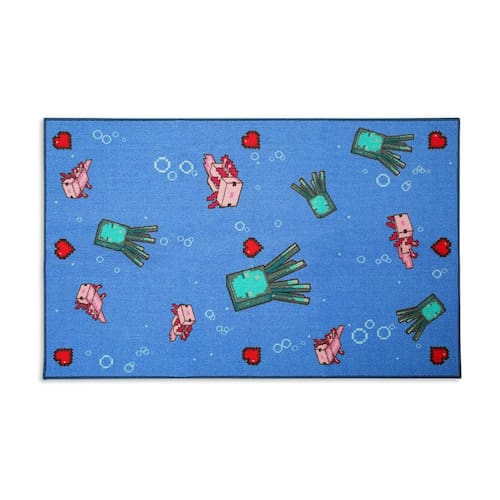 - Estilo perfeito em pixels: o tapete retangular mostra todos os seus personagens subaquáticos favoritos do Minecraft em um design azul vibrante. Apresenta Axolotls, Glow Squids, corações e bolhas, como visto no videogame.