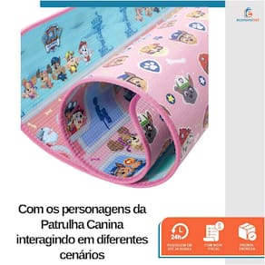 Principais características: Estampa divertida da Patrulha Canina – ideal para meninas Formato em rolo, prático para guardar e transportar Tapete acolchoado: mais conforto e proteção Fácil de limpar com pano úmido Indicado desde o nascimento (0+) Composição: PVC Medidas: 1,20m x 1,80m