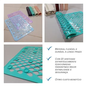 O tapete antiderrapante da policorda apresenta 24 ventosas espalhadas por sua superfície que se fixam no piso úmido. Isso é responsável por atribuir mais conforto e segurança na hora do banho.