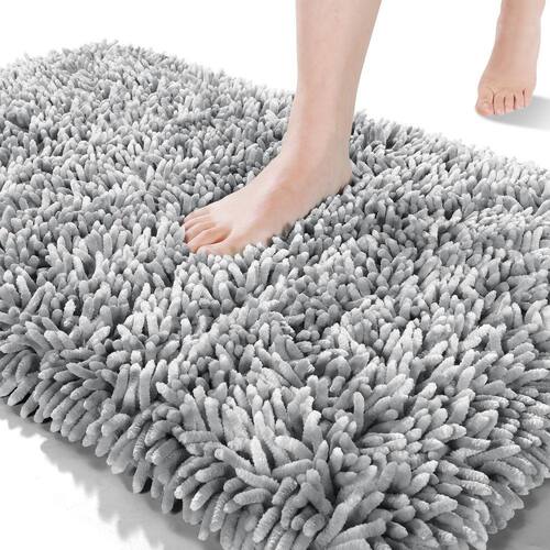Tapete de banheiro Yimobra de 24 x 17 polegadas, tapetes de banho felpudos de chenille de luxo extramacios e absorventes, antiderrapantes, laváveis à máquina a seco, tapete de pelúcia para banheira, chuveiro e banheiro, cinza claro