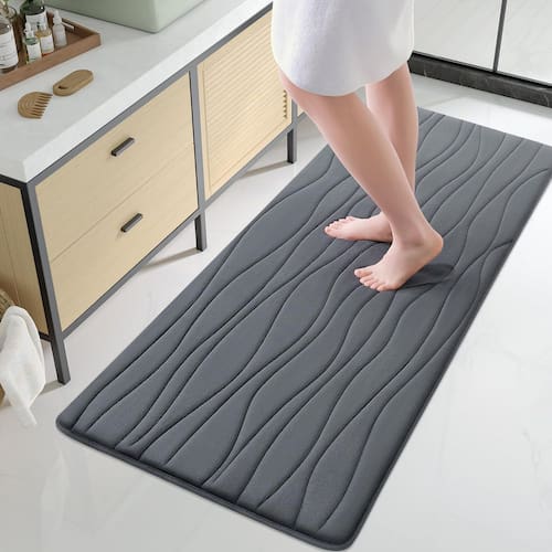 Buganda O tapete de banho de espuma viscoelástica é feito de material de espuma viscoelástica agradável, oferecendo ampla suavidade e suporte. Ele se adapta à forma dos seus pés e alivia a pressão, proporcionando uma boa experiência de conforto. A superfície é coberta com um tecido resistente e fácil de limpar. Disponível em e tamanhos, este tapete é adequado para uso em banheiros, cozinhas, quartos, salas de estar e muito mais. Seja no chão escorregadio do banheiro ou na área de trabalho da cozinha, o tapete de espuma viscoelástica possui um suporte antiderrapante e oferece uma sensação confortável sob os pés. - Ultra macio e confortável: os tapetes de banheiro Buganda são feitos de material externo de veludo coral de microfibra ultramacia e apresentam uma almofada de espuma viscoelástica de pelúcia. É como pisar em uma nuvem, oferecendo conforto incomparável para seus pés em pé - Base antiderrapante: nosso tapete de banho de espuma viscoelástica possui um suporte de PVC robusto e firme que evita deslocamentos e derrapagens e garante durabilidade duradoura. Aviso: coloque o tapete apenas em pisos lisos e secos. A água sob os tapetes de banho pode fazer com que ele escorregue. Mantenha a parte inferior do tapete seca. Antes de usar o tapete de banho, teste com o pé para garantir que ele não se mova - Absorção de água eficiente: os tapetes de banho de espuma viscoelástica Buganda apresentam uma camada de flanela macia que absorve rapidamente a umidade, mantendo seus pés secos e impedindo que a água permaneça na superfície. Aproveite a conveniência de um tapete de banheiro de secagem rápida e confiável - Limpeza fácil: a limpeza é muito fácil com nossos tapetes de banho. Basta lavar à máquina com água fria e detergente neutro, evitar cloro ou alvejante. Você pode secar em baixa velocidade ou pendurar para secar. As cores vibrantes permanecerão verdadeiras, mesmo após várias lavagens - Remova o vinco: nosso tapete de banheiro é embalado usando nosso método inovador de embalagem enrolada. Para remover efetivamente os vincos, siga estas etapas: 1. Coloque uma toalha úmida sobre as seções dobradas do tapete de banho; 2. Pressione suavemente e mova o ferro pelo tapete periodicamente. Este processo deve reduzir significativamente os vincos. Uma vez que os vincos são minimizados, o tapete de banheiro pode ser colocado em qualquer lugar no banheiro
