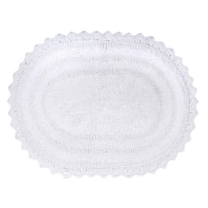 DII Coleção de crochê, tapete de banho reversível, grande oval, 53 x 86 cm, branco