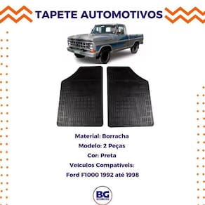 Tapete de Borracha Da Cabine para Ford F1000 1992 até 1998 2 Peças - Carfloor -marca: Carfloor -código do Fabricante: G0730 -modelo: 2 Peças 02 peças dianteiras -material: Borracha -cor: Preto -jogo de tapete borracha