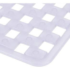 Características: Este tapete evita derrapagens e escorregões durante os banhos. Com ventosas que se fixam ao piso frio, permanece grudado mesmo quando molhado. Feito de plástico polipropileno transparente, possui formato retangular para cobrir uma área considerável no espaço do box.