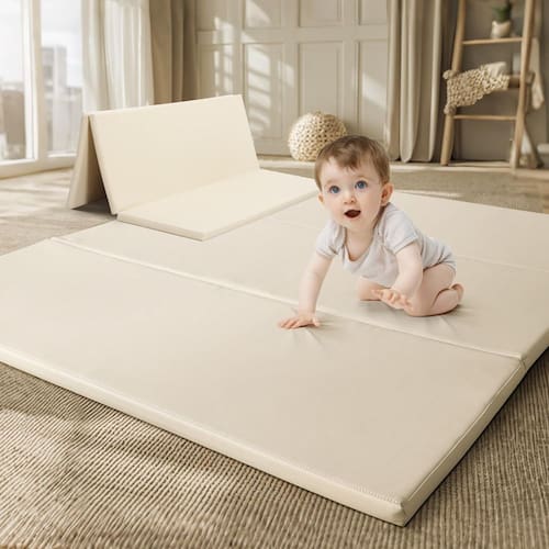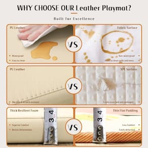 Apresentamos nosso grande tapete bege de espuma para bebês, o complemento perfeito para sua casa para criar uma área de recreação segura e confortável para bebês e crianças pequenas. Medindo 48 x 48 x 1,2 polegadas, este tapete infantil durável e confortável apresenta um forro de esponja macia e uma superfície de couro premium, proporcionando uma experiência acolchoada ao engatinhar, brincar e dormir. Características principais: Design perfeito: o tapete espesso e macio para bebês garante a máxima segurança para seu bebê, tornando-o ideal para várias atividades, como ficar de barriga para baixo, aprender a andar e brincar. O design com três dobras permite que ele se dobre facilmente para facilitar o armazenamento e a portabilidade. Impermeável e fácil de limpar: este tapete lavável pode ser limpo, facilitando a manutenção de uma área de recreação higiênica. Diga adeus às preocupações com derramamentos e bagunças! Uso versátil: nosso tapete para bebês é adequado para brincadeiras internas e externas, tornando-o a escolha ideal para cercadinhos, playards e academias para bebês. É perfeito para qualquer área de recreação para bebês e crianças pequenas, acomodando atividades como engatinhar, sentar e até mesmo cochilar. Durável e não tóxico: feito de materiais vegetarianos de alta qualidade, este tapete de espuma é seguro e durável. Seu design extra espesso fornece um amortecedor antiderrapante, garantindo a segurança de seus filhos enquanto eles exploram o ambiente. Este tapete de brincar para crianças é ideal para meninos e meninas, oferecendo uma área aconchegante e convidativa para atividades infantis. Com nossos tapetes para bebês e crianças pequenas, você pode transformar qualquer espaço em uma zona de recreação divertida e segura. Torne a hora de brincar do seu filho segura e agradável com nosso tapete excepcional hoje! - Impermeável e fácil de limpar: tapete de espuma bege HOOHTOOT para bebês com forro de espuma macia e blusa de couro. A superfície de couro PU de um grande tapete de espuma garante que derramamentos e bagunças sejam fáceis de limpar, mantendo a espuma do tapete de brincar limpa e higiênica - Acolchoamento de espuma espessa: com uma almofada de espuma espessa, este tapete fornece uma superfície macia e acolchoada que oferece excelente amortecimento e resistência ao deslizamento, tornando o tapete ideal para engatinhar, brincar e até mesmo cochilar - Dobrável e portátil: do tamanho do o tapete é 48x48x1,2 polegadas. Com seu design triplo, este tapete de espuma é facilmente dobrável para armazenamento e transporte convenientes. O tamanho compacto do tapete de espuma quando dobrado o torna perfeito para uso doméstico e em qualquer lugar. Durável e seguro: construído com couro PU de alta qualidade, vegano e não tóxico, este tapete de bebê para chão garante segurança e durabilidade. É projetado com um tapete de espuma para bebês que resiste ao desgaste diário e, ao mesmo tempo, oferece um ambiente de recreação seguro para crianças pequenas. Uso versátil: perfeito para várias atividades, incluindo ficar de barriga para baixo, engatinhar, aprender a andar e brincar, este tapete de espuma é adequado para uso interno e externo, incluindo academias e cercadinhos para bebês
