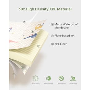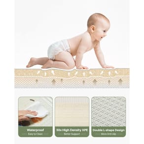 Nossos tapetes foram reconhecidos por muitos blogueiros conhecidos e também são uma marca muito conhecida, que cria apenas produtos para bebês. O tapete de brincar para bebês não é problema para os bebês arranharem, mas objetos pontiagudos como brinquedos afiados, saltos, cadeiras altas e unhas de animais não são aceitáveis. Não é resistente a unhas de animais de estimação – é feito de espuma XPE que pode ser perfurada, então tente evitar arranhões no animal de estimação. - [Design fofo de desenho duplo]: o tapete BG-BABYGO para bebês combina perfeitamente com diferentes decorações de casa com design reversível. Um lado tem um design de padrão popular de dinossauros para permitir que seu filho use sua imaginação para jogar jogos de carro, enquanto o outro lado possui belas trilhas de ilha. - Saty is NO. 1]: O tapete de espuma BG-BABYGO é feito de material de espuma XPE de alta densidade, que não é tóxico, inodoro e livre de todos os produtos químicos nocivos. E sua superfície não é fácil de rasgar, oferecendo uma superfície segura para crianças e bebês deitarem, rolarem e engatinharem. Ele fez CPC e muitos outros testes e certificações internacionais. - [Várias especificações e tamanho grande]: nosso tapete de bebê para piso projetado em vários tamanhos, 127 cm x 198 cm e 177 cm x 198 cm oferece espaço suficiente para o seu pequeno explorar, brincar e tirar uma soneca. Somos a única marca que oferece tapetes de 1,5 cm e 2 cm de espessura na Amazon, mais especificações para você escolher. - [Impermeável e fácil de limpar]: nosso tapete de brincar para bebês tem superfície 100% resistente à água e também é fácil de limpar. Basta limpar com lenços ou lenços. Além disso, a camada de superfície à prova d'água também protege a cor do padrão de queda, exatamente durável de usar. Isso o torna uma escolha conveniente para pais ocupados. - Dobrável e portátil: nossos tapetes de engatinhar são fáceis de dobrar e espalhar e fáceis de armazenar e transportar. Assim, você sempre pode levá-lo para fora para desfrutar de um tempo agradável ao ar livre com seu bebê!