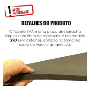 Proteção de caçamba em eva 8mm modelo com superfcie lisaTabela de aplicações:Montadora : fordProtetores de caçamba riscam com uma certa facilidade e ficam com um aspecto de mais velhos e surrados do que realmente são. Pensando nisso foi desenvolvido uma proteção simples em e.V.A de espessura de 8mmRecorte sob medida para a sua courier em e.V.A 8 mm, ele tem um encaixe especificoO recorte do e.V.A é nas medidas do protetor de caçamba, caso o carro não possua o protetor, a prpteção poderá ficar menor.Especificações tecnicas:- fabricado em e.V.A 8mm- encaixe fácilNosso horário de atendimento é de segunda a sexta das 9 as 17 horas exceto feriados .Boa compra...Atenção: as compras realizadas em nome de pessoa jurídica estão sujeitas à cobrança de icms, conforme protocolo icms 41, de 4 de abril de 2008. Caso você tenha dúvidas sobre o percentual a ser aplicado, consulte a cláusula segunda, 1 do referido protocolo.