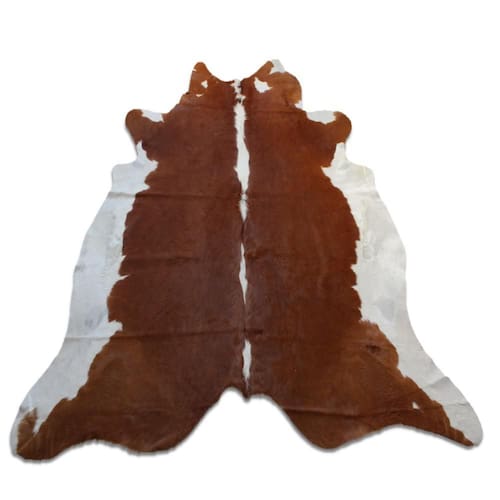 Os tapetes de pele em formato natural são medidos pelas maiores extremidades, ou seja, de uma ponta à outra. Fazemos a medição dessa forma para que você saiba se a pele caberá num determinado espaço. Tapete de pele inteira com pêlo no formato do boi na cor natural do animal.