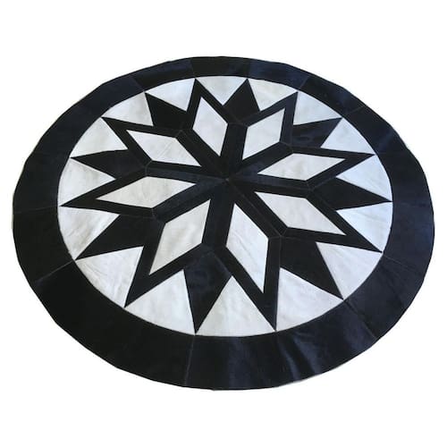 Tapete De Couro Redondo Preto E Branco Por se tratar de produto de origem animal, podem ocorrer pequenas variações de cor, tamanho e padrão. Este tapete possui forro em tecido de Nylon, dublado com espuma semelhante ao forro interno dos tênis . Cuidados com o seu tapete: Limpeza: pode-se usar aspirador de pó, vassoura, e escova de mão, sem aplicar força excessiva. Lavagem: Apenas água e sabão neutro. Evitar o contato do produto com tintas, vernizes e similares. Não recomendamos o uso de removedores sintéticos e abrasivos. O uso de tapete de couro está muito popular em casas modernas. Existem em diversas cores, são muito versáteis, fáceis de manter e de limpar. Os tapetes de couro adaptam-Se a qualquer estilo de decoração. São tapetes ideais para criar um contraste no ambiente em que se inserem, ao mesmo tempo que atribuem à divisão um aspecto mais elegante e rústico. Cor: Preto E Branco Medidas: 2,00 de diâmetro. Marca: Não Informado