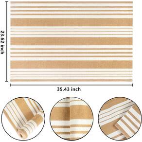 Por que escolher um tapete de algodão tecido à mão listrado branco e cáqui? Se você deseja trazer uma sensação exótica e elegante para sua casa, considere comprar este tapete listrado de tecido elegante e moderno, este tapete cáqui e branco é o destaque para sua casa bem organizada. Adicione à sala e complemente um arranjo boêmio eclético ou use-o para nivelar um visual contemporâneo nítido na sala de estar. Seu motivo de inspiração listrada adiciona um toque de padrão a qualquer espaço. Características do produto: Material resistente. O tapete de área de algodão branco e cáqui é bem feito de material de algodão natural. É macio o suficiente para colocar sobre o chão de qualquer material e resistente o suficiente para ajudar a absorver o impacto dos pés e do ruído. Fácil de cuidar. Lavável na máquina em ciclo delicado com água fria. Cores separadas. Lavagem a seco aplicável. Não usar alvejante. Passar a ferro em temperatura baixa. Proteja seu chão Proteja seu piso de madeira de arranhões e manchas, remova poeira e manchas em seus pés, crie um ambiente interno limpo e arrumado. Uso multifuncional: Existem 4 tamanhos: 6 cm x 7 cm: utilizado como capacho, capacho em camadas Tapete de exterior azul e branco de 6 x 11 cm, tapete de varanda frontal 9,5 x 1,12 m x 1,6 m: tapete de exterior azul e branco, tapete de pátio Observação quente: Não usar alvejante. A temperatura da água não é superior a 35 °C. Não use uma escova dura para lavar. Evite deixar de molho por muito tempo Use saco de lavanderia Aviso: 1. Devido à diferença de luz e tela. a cor do item pode ser ligeiramente diferente das imagens. 2. Considere uma diferença de 1 a 3 cm devido à medição manual. - ?Material confortável?: Feito de 45% algodão + 45% poliéster + 10% tecido viscose, macio e resistente, com uso duradouro, macio e confortável. Disponível em ambos os lados. A cor dos nossos tapetes cáqui e branco permanecerá brilhante e não desbota para outra cor. - ?Padrão clássico simples?: um design exclusivo com um padrão de trama texturizada listrada para criar uma bela decoração de varanda para sua casa, o que torna sua casa tão quente e elegante. Tapete moderno e moderno, chique e moderno é a boa maneira de elevar a decoração da sua casa. Este tapete branco e cáqui ao ar livre é ótimo para o uso diário. - ?Combinado com capacho de boas-vindas?: nossos tapetes de porta em camadas combinam com o capacho de boas-vindas, adicionando um brilho diferente à sua varanda! A estrutura meticulosamente tecida apresenta durabilidade, e seu visual moderno se destaca, é uma escolha fantástica para decoração de casa de fazenda ou decoração contemporânea. - ?Fácil de limpar?: pode ser lavado em máquinas de lavar roupa, lavado à mão ou usar aspiradores de pó. Lave o tapete da porta da frente separadamente em água fria com detergente neutro, não use alvejante disponível, seque com secadoras de baixa definição ou seque ao ar. Não coloque na secadora. Observe que coloque os capachos em um saco de roupa ao lavar o tapete de tecido preto com uma máquina de lavar. - ?Várias ocasiões?: com um padrão moderno é uma escolha fantástica para decoração de casa de fazenda ou decoração moderna, as fibras do tapete interno e externo são resistentes o suficiente para um capacho de boas-vindas, tapete de porta da frente, tapetes internos e externos, tapete de entrada, tapete de quarto, tapete de cozinha, tapetes de sala de estar, tapete de banheiro.