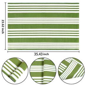 Por que escolher um tapete de algodão tecido à mão listrado verde e branco? Se você deseja trazer uma sensação exótica e elegante para sua casa, considere comprar este tapete listrado de tecido elegante e moderno, este tapete azul e branco é o destaque para sua casa bem organizada. Adicione à sala e complemente um arranjo boêmio eclético ou use-o para nivelar um visual contemporâneo nítido na sala de estar. Seu motivo de inspiração listrada adiciona um toque de padrão a qualquer espaço. Características do produto: Material resistente. O tapete de área de algodão azul e branco é bem feito de material de algodão natural. É macio o suficiente para colocar sobre o chão de qualquer material e resistente o suficiente para ajudar a absorver o impacto dos pés e do ruído. Fácil de cuidar. Lavável na máquina em ciclo delicado com água fria. Cores separadas. Lavagem a seco aplicável. Não usar alvejante. Passar a ferro em temperatura baixa. Proteja seu chão Proteja seu piso de madeira de arranhões e manchas, remova poeira e manchas em seus pés, crie um ambiente interno limpo e arrumado. Uso multifuncional: Existem 4 tamanhos: 6 cm x 7 cm: utilizado como capacho, capacho em camadas Tapete de exterior azul e branco de 6 x 11 cm, tapete de varanda frontal 9,5 x 1,12 m x 1,6 m: tapete preto e branco para ambientes externos, tapete de pátio Observação quente: Não usar alvejante. A temperatura da água não é superior a 35 °C. Não use uma escova dura para lavar. Evite deixar de molho por muito tempo Use saco de lavanderia Aviso: 1. Devido à diferença de luz e tela. a cor do item pode ser ligeiramente diferente das imagens. 2. Considere uma diferença de 1 a 3 cm devido à medição manual. - ?Material confortável?: Feito de 45% algodão + 45% poliéster + 10% tecido viscose, macio e resistente, com uso duradouro, macio e confortável. Disponível em ambos os lados. A cor dos nossos tapetes verdes e brancos permanecerá brilhante e não desbota para outra cor. - ?Padrão clássico simples?: um design exclusivo com um padrão de trama texturizada listrada para criar uma bela decoração de varanda para sua casa, o que torna sua casa tão quente e elegante. Tapete moderno e moderno, chique e moderno é a boa maneira de elevar a decoração da sua casa. Este tapete azul e branco ao ar livre é ótimo para o uso diário - ?Combinado com capacho de boas-vindas?: nossos tapetes de porta em camadas combinam com o capacho de boas-vindas, adicionando um brilho diferente à sua varanda! A estrutura meticulosamente tecida apresenta durabilidade, e seu visual moderno se destaca, é uma escolha fantástica para decoração de casa de fazenda ou decoração contemporânea. - ?Fácil de limpar?: pode ser lavado em máquinas de lavar roupa, lavado à mão ou usar aspiradores de pó. Lave o tapete da porta da frente separadamente em água fria com detergente neutro, não use alvejante disponível, seque com secadoras de baixa definição ou seque ao ar. Não coloque na secadora. Observe que coloque os capachos em um saco de roupa ao lavar o tapete cinza com uma máquina de lavar. - ?Várias ocasiões?: com um padrão moderno é uma escolha fantástica para decoração de casa de fazenda ou decoração moderna, as fibras do tapete interno e externo são resistentes o suficiente para um capacho de boas-vindas, tapete de porta da frente, tapetes internos e externos, tapete de entrada, tapete de quarto, tapete de cozinha, tapetes de sala de estar, tapete de banheiro.
