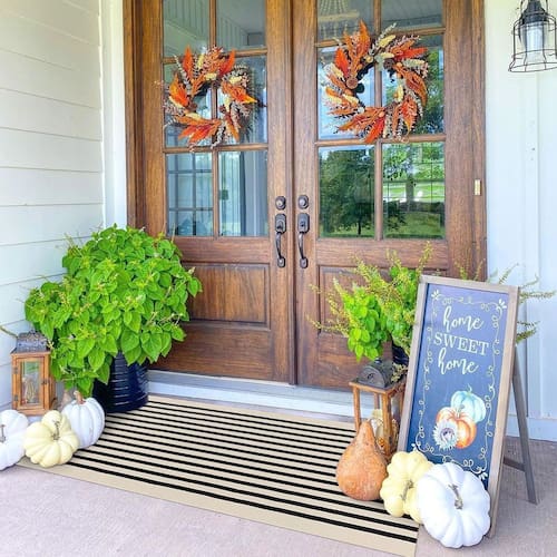 Eleve seu espaço com um tapete listrado premium para uso ao ar livre! Liberte o fascínio do estilo e do conforto com nosso tapete externo preto e branco mais grosso e pesado. Feito de algodão premium de alta qualidade, este tapete de porta externo apresenta uma suavidade exuberante que agradará seus sentidos a cada passo. Com uma espessura baixa de apenas 0,3 cm, atinge o equilíbrio perfeito entre conforto acolchoado e praticidade. Prepare-se para se surpreender com o aumento de densidade de 20% que diferencia nosso tapete da varanda do resto! Este não é o seu típico tapete ao ar livre – é uma afirmação. Ecológico e habilmente tecido à mão, não perderá seu charme ou vitalidade ao longo do tempo. O design reversível garante que seu espaço permaneça brilhantemente colorido e acolhedor durante todo o ano. Manter o charme do seu espaço é muito fácil com nossos tapetes internos e externos fáceis de limpar. Um rápido aspirador ou agitação mantém a melhor aparência. E quando a vida acontecer, não se preocupe – jogue-o na máquina de lavar no ciclo delicado e deixe secar ao ar. Não é necessário alvejante, garantindo sua longevidade e fascínio vibrante. Não é apenas um tapete de área externa – é uma atualização de estilo de vida! Abrace a versatilidade do nosso tapete para ambientes internos e externos. O visual chique e moderno combina perfeitamente com qualquer estilo de decoração, enquanto sua natureza resistente ao sol garante que permaneça vívido e vibrante nas próximas estações. Perfeito para sua varanda, entrada, pátio, quarto, cozinha, lavanderia – as possibilidades são infinitas. E quando você estiver procurando o presente perfeito, não procure mais. Seus entes queridos vão adorar esta adição prática e elegante ao seu espaço. Compre com confiança! Sua satisfação é nossa estrela-guia. Com nossa política de devolução sem complicações de 30 dias, você está no controle. Se algo ficar aquém da perfeição, nós nos aventuraremos com soluções rápidas. Na KOZYFLY, acreditamos que a garantia de qualidade e a felicidade do cliente andam de mãos dadas. - Mistura de algodão durável: um tapete de varanda frontal, feito KOZYFLY partir de uma mistura de algodão e poliéster, apresenta uma pilha baixa de 0,3 cm que é 20% mais densa do que os tapetes típicos. Tecido à mão, não solta e não desbota, este tapete listrado permanece brilhante e durável para uso duradouro - Fácil de limpar: basta aspirar ou agitar nosso tapete de varanda preto e branco para mantê-lo limpo. Lavar à máquina o tapete de entrada ao ar livre no ciclo de lavagem delicado. Secar ao ar livre para proteger e prolongar a vida útil do seu tapete de varanda preto e branco. Não usar alvejante - Combinado com capacho de boas-vindas: eleve sua varanda com um visual em camadas! Este tapete de porta frontal de 5 x 10 cm combina muito bem com um tapete de boas-vindas, adicionando charme extra à sua entrada. Meticulosamente tecido para durabilidade, seu design moderno é essencial para decoração de casa de fazenda - Tapete interno e externo: adequado para espaços internos e externos. O tapete preto e bege é resistente à luz solar, mantendo suas cores vibrantes intactas. Ideal para entradas, quartos, pátios, cozinhas e muito mais, adicionando estilo a qualquer área - Dicas de cuidados ao ar livre: Para uso ao ar livre, tome cuidado durante o tempo úmido. Em caso de chuva, recomendamos limpar e secar imediatamente o tapete para manter sua qualidade, prolongando sua vida útil para sua diversão - Lembrete antiderrapante: Observe que este tapete não tem um suporte antiderrapante dedicado. Para melhor aderência e segurança, recomendamos o uso de almofadas antiderrapantes ou adesivos - Design versátil: o tapete listrado bege combina com estilos modernos. Ideal para reuniões, receber convidados ou jantares em família. Ótimo para decoração de férias, atualizações sazonais ou uso diário, adicionando calor e estilo a qualquer espaço