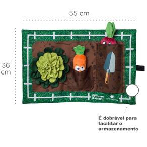 Modo de usar: 1 –Coloque petiscos ou ração entre as pelúcias, nos bolsos, etc.2 –Recheie e esconda os petiscos nos bolsos.3 –Que comecem os jogos! Coloque o jogo no chão e estimule seu cão a procurar pelos petiscos. Ensine e mostre como obter o alimento. Ele irá aprender!Cães são muito mais inteligentes que você pensa. Às vezes nós só precisamos ensiná-los. Deixe os bolsos abertos para tornar esse jogo fácil e mostre ao seu cão como abri-los. Use petiscos realmente gostosos para que seu cão possa farejá-los. Queijo, bifinhos macios ou manteiga de amendoim funcionam muito bem. Supervisione o uso o tempo todo. Inspecione regularmente se há danos e remova caso esteja rasgado. Destinado a cães somente. Mantenha fora do alcance das crianças. Este brinquedo deve ficar guardado até a próxima brincadeira e uso supervisionado. Não deixe seu cão mastigar ou roer o brinquedo. Não há garantia quanto à destruição. Não é um brinquedo de roer. Uma vez sem alimentos ou petiscos, remova do contato com o cão.Medidas aproximadas:55x36CmDestinado a cães somente. Mantenha fora do alcance das crianças. Este brinquedo deve ficar guardado até a próxima brincadeira e uso supervisionado. Não deixe seu cão mastigar ou roer o brinquedo. Não há garantia quanto à destruição. Não é um brinquedo de roer. Uma vez sem alimentos ou petiscos, remova do contato com o cão.Medidas aproximadas:55x36Cm