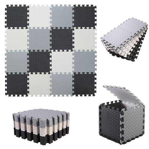 Tamiplay Sempre insiste em fornecer aos compradores tapetes de brinquedo de espuma de alta qualidade para bebês - ?Tapete de jogo com 16 ladrilhos interligados?O tamanho de cada bloco quadrado é (29 x 28 x 0,4 cm) e a área de cobertura total é de 1,5 m ² (1,8 x 10 m de área). O tapete de espuma de piso vem com 3 cores - Tapete de brinquedo de espuma espessa de 1 centímetro: usando suporte de espuma de EVA de alta densidade, o tapete de engatinhamento de bebê de 1 cm de espessura proporciona um bom desempenho de amortecimento, amortece confortavelmente a coluna, quadris, joelhos e cotovelos em pisos duros - Não tóxico, antiderrapante, fácil de limpar, fácil de montar?Azulejos de espuma de EVA não tóxicos, testados sem grafite, BPA e ftalatos; a superfície com textura de folha, antiderrapante dupla face; fácil de limpar com pano úmido e sabão neutro; leve, muito fácil de montar - 3 cores combinadas à vontade?O tapete para bebê vem com 3 cores, que podem ser combinadas arbitrariamente e mais de um esquema de colocação. Ajuda a melhorar a capacidade prática da criança, capacidade de reconhecimento de padrões e capacidade de percepção de cores - Adequado para vários cenários?Tapete de quebra-cabeça adequado para pisos, quarto, sala de estar, sala de jogos, jogos de bebê, esportes, ioga e fitness
