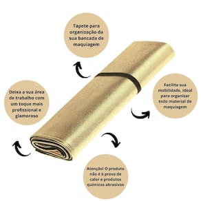 É um tapete para organização da sua bancada de maquiagem, deixando a sua área de trabalho com um toque mais profissional e glamoroso. Agora ficou mais facil organizar seus acessórios durante um atendimento de maquigem, facilitando sua mobilidade, Ideal para organizar todo material de maquiagem. Atenção! O produto não é à prova de calor e produtos químicos abrasivos.