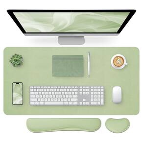 Bloss Almofada de mesa de couro e descanso de pulso para teclado, mouse pad grande + teclado + suporte de pulso para mouse, protetor de mesa antiderrapante para escritório, casa (90 x 40 cm, verde) - ?Almofada de mesa de qualidade?As almofadas de mesa Bloss são feitas de material de couro PU durável, o couro é macio e não muito fino para proteger sua mesa de arranhões, manchas, derramamentos, tinta, calor e arranhões, proporcionando uma mesa limpa e arrumada. - ?Tamanho grande multiuso?O mouse pad é grande o suficiente para guardar um laptop, mouse, teclado e caneca. A espessura de 2 mm oferece um toque macio e confortável, você pode usá-lo como um bloco de escrita, tapete de mesa, mouse pad ou organizador de mesa para cozinha e escritório. - ?Base antiderrapante com camurça? O material de camurça artificial utilizado na parte de trás do tapete de mesa tem excelente estabilidade e suavidade antiderrapante, para que você não se mova facilmente ao usar a escrivaninha e pode garantir a segurança de todos os seus itens de mesa. - ?Impermeável e fácil de limpar?O tapete de mesa de couro PU é à prova d'água e resistente ao calor, fácil de limpar. Pode proteger perfeitamente sua mesa de bebidas, tinta e outros líquidos. Para limpar, basta limpar as manchas da superfície com um pano úmido. Observe que seu suporte de camurça não é à prova d'água! - ?Melhor escolha?O tapete de mouse de mesa requintado e durável oferece um prático protetor organizador de mesa e decoração para sua mesa e casa, e é a melhor escolha para seu próprio uso ou como presente. Sua satisfação 100% é o nosso objetivo. Se você tiver alguma dúvida, para resolvê-las para você!